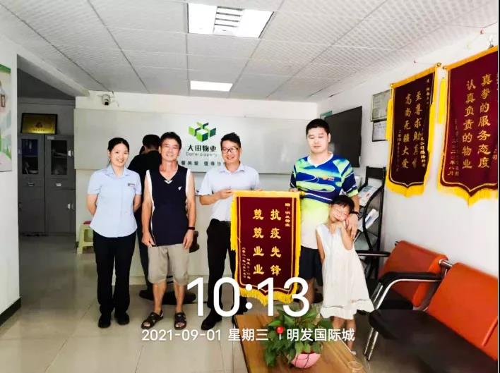 2021年9月1日,明發(fā)國(guó)際城南住項(xiàng)目6棟2單元504業(yè)主為咱們小區(qū)大田物業(yè)送上“抗疫先鋒,